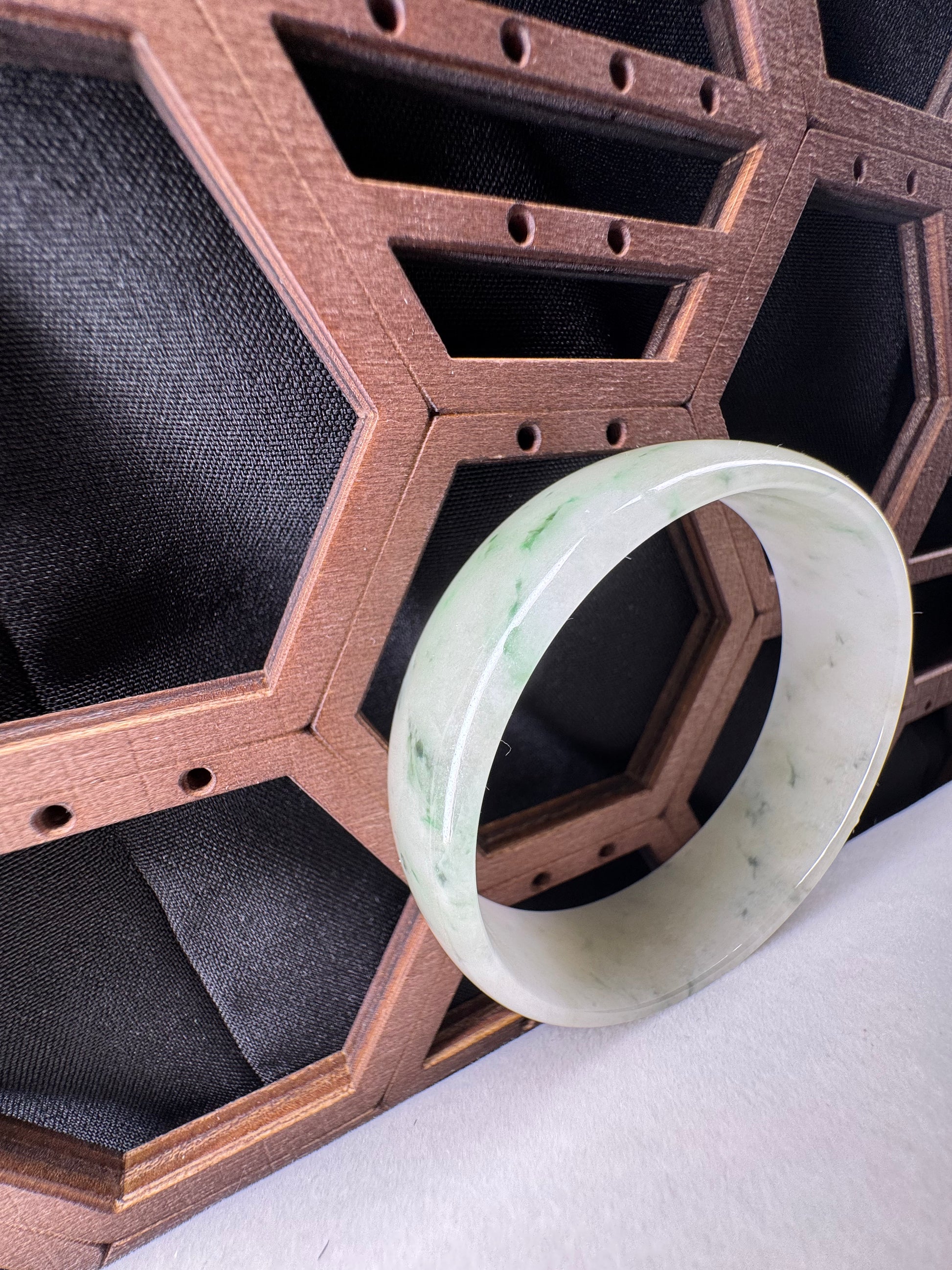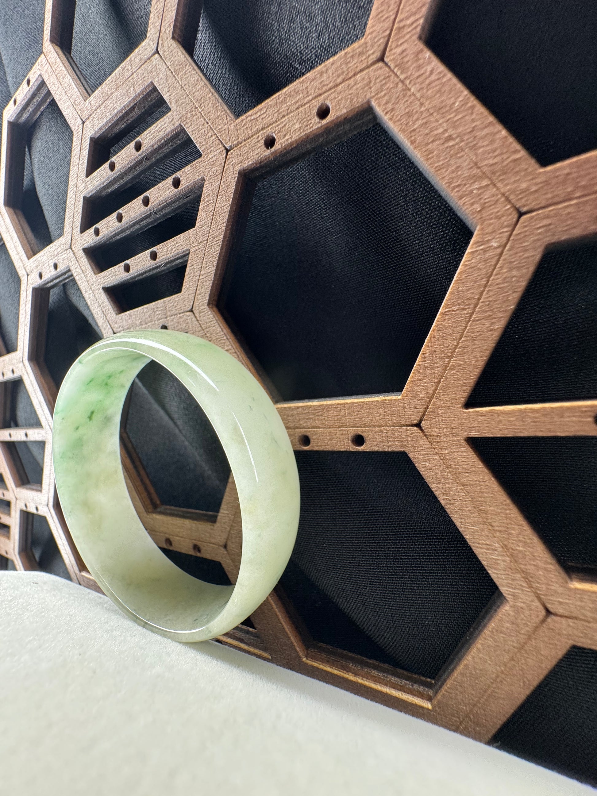 Very unique colors with light, dark green on the warm yellow stone. Would be good looking on small wrist.