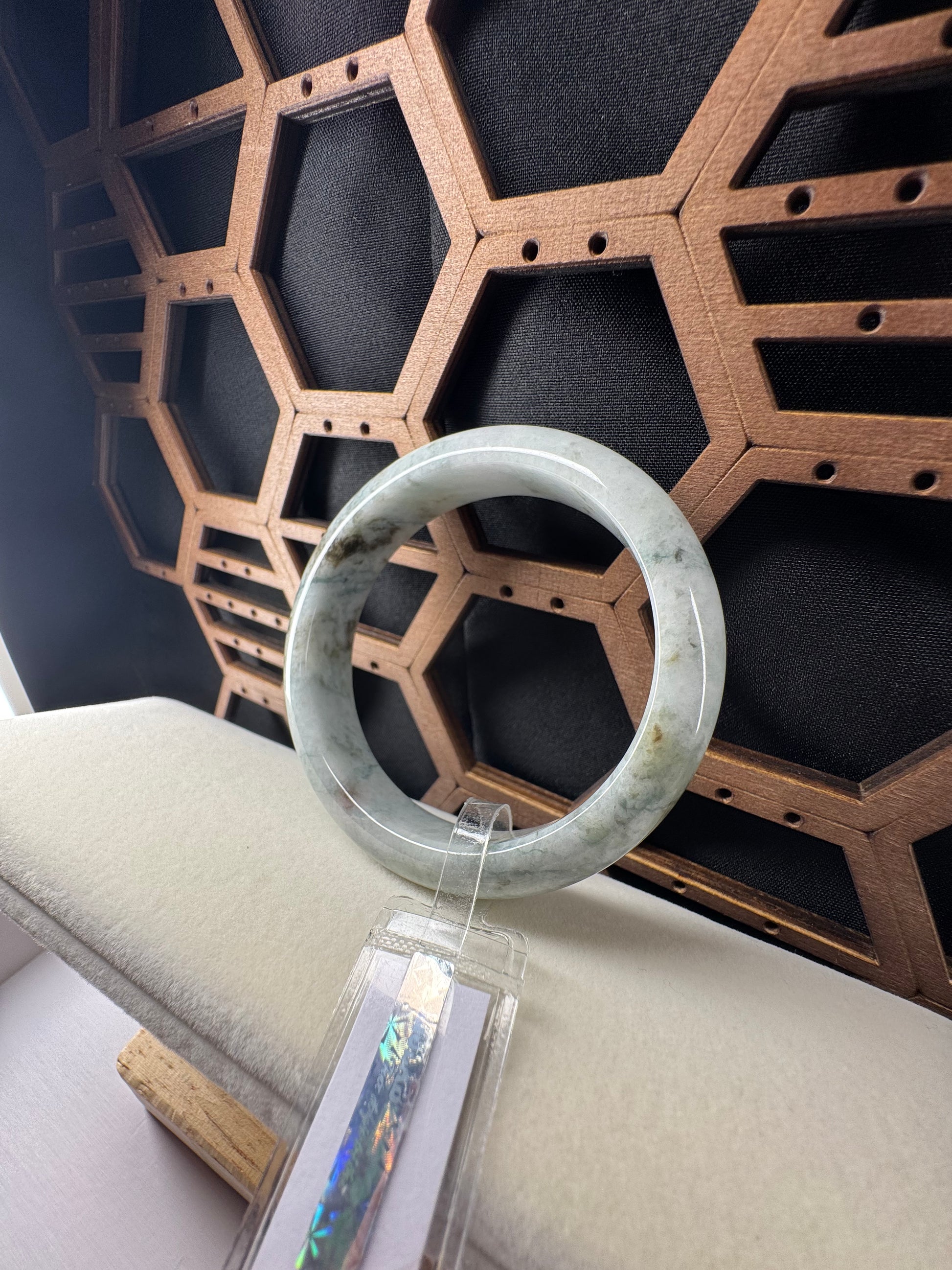 Genuine Burmese Jadeite Jade Bangle Bracelet. This bangle is made with very high quality genuine Burmese Green Jadeite jade, The jade texture is so transparent with green color inside. The green color and transparency texture, truly a mesmerizing combination. The Classic half-round style bracelet. it looks completely luxurious and perfect. It's a high-end gift for yourself or your love.