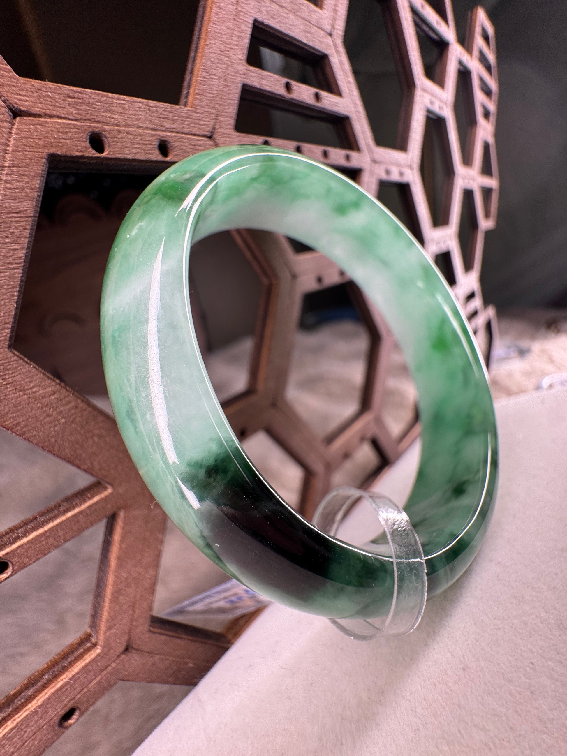 Cool and smooth feeling bangle. The different types of green bring up the elegant looks to the jewel.