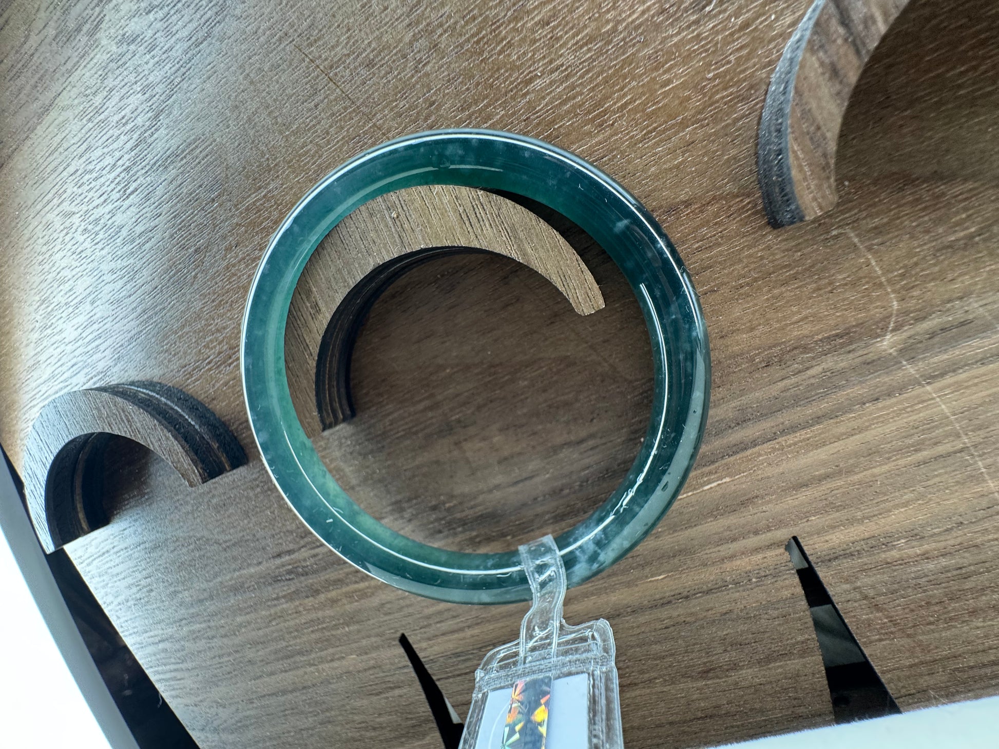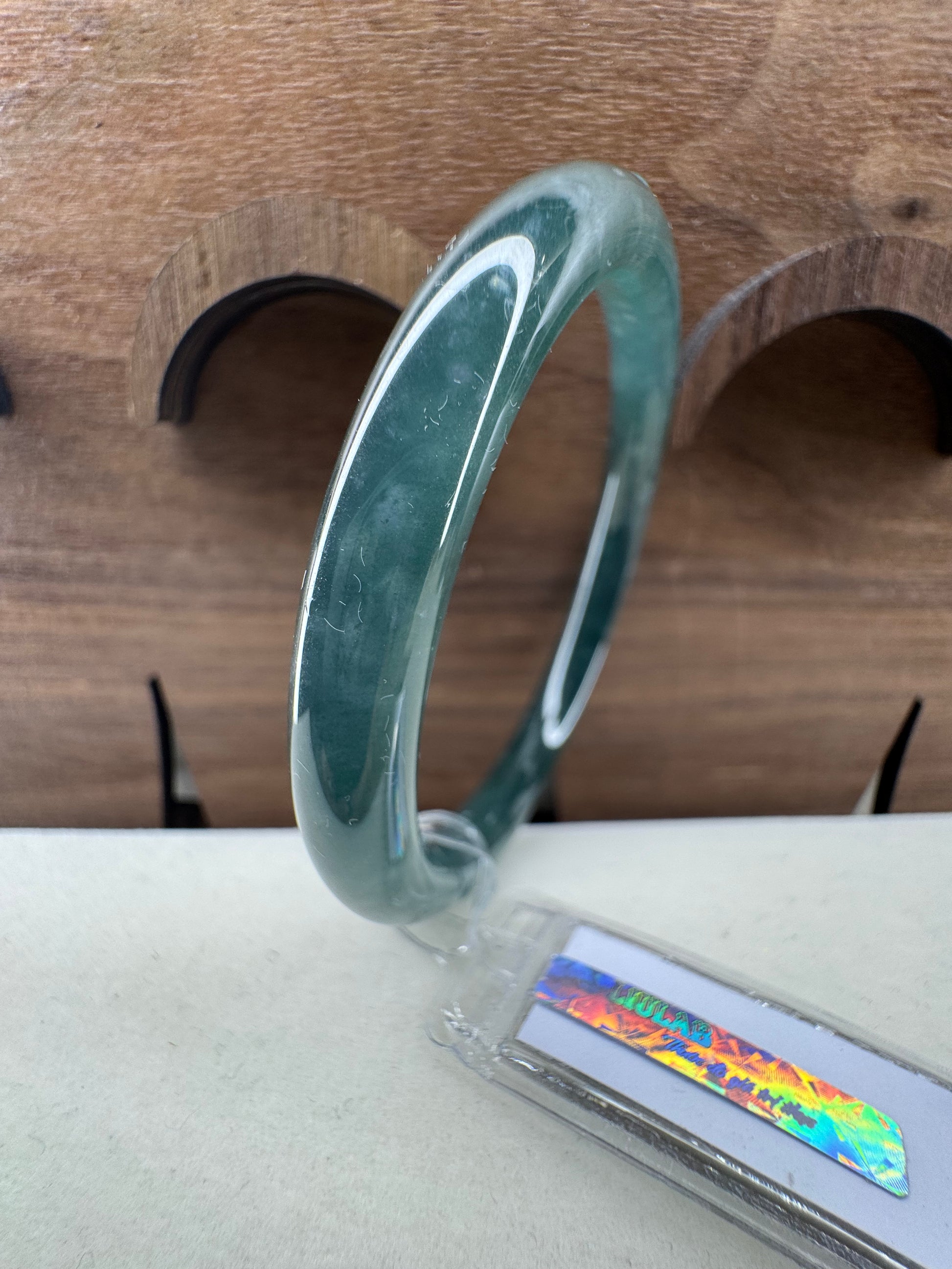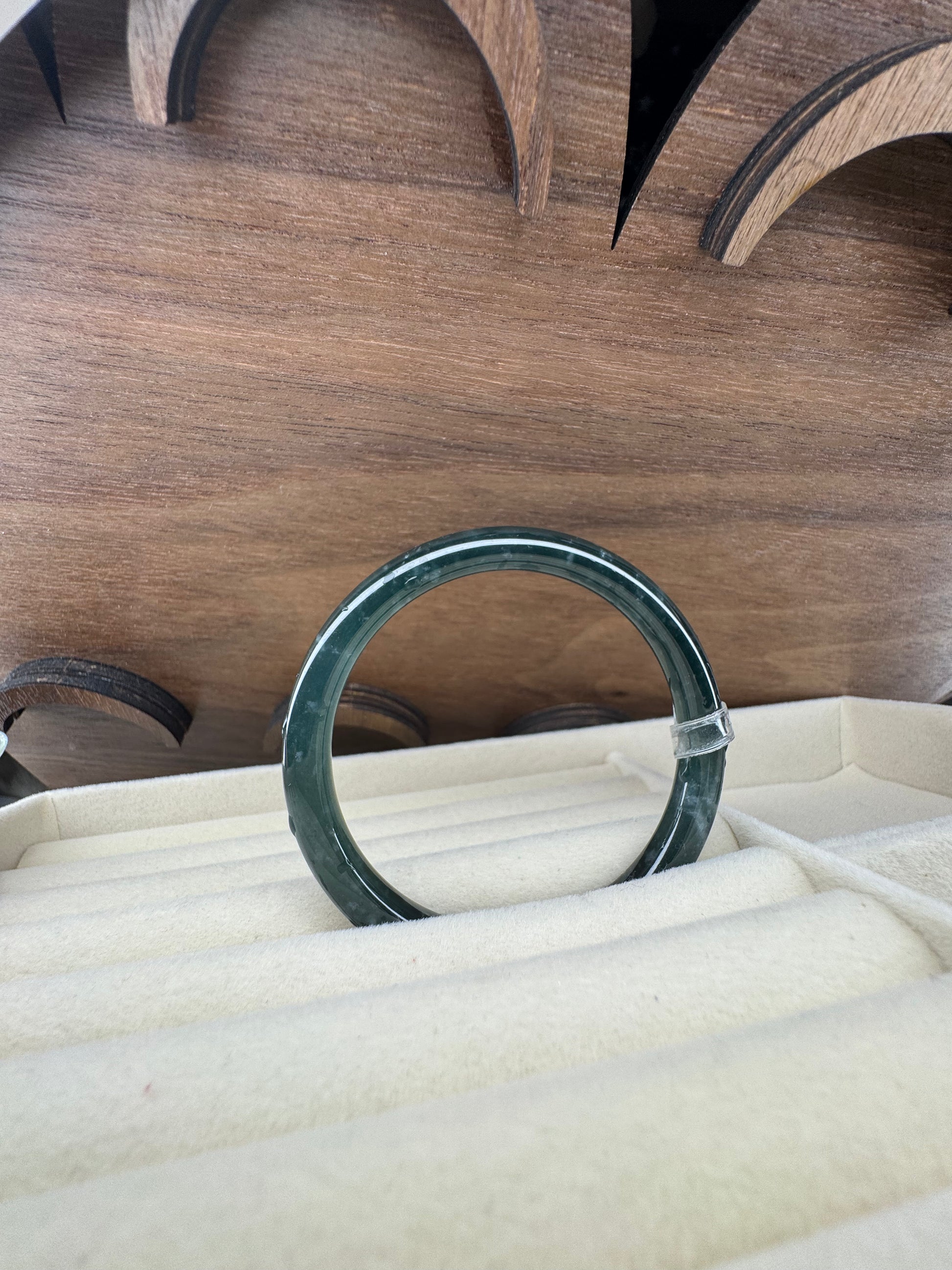 Pale White Snow flakes inside Green Classic Round Bangle. size 55mm
